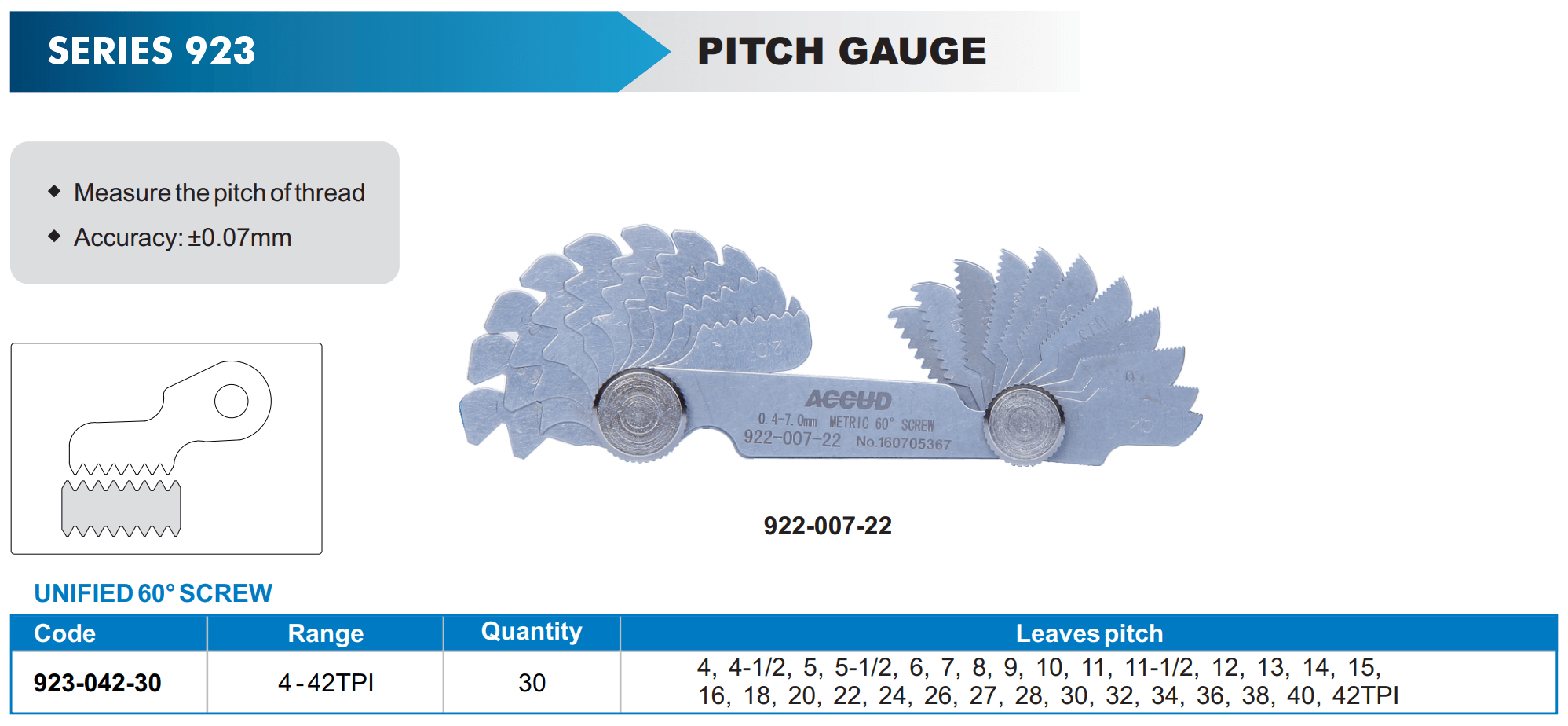 • High Precision: Provides accurate measurements of thread pitch, ensuring compatibility and proper fit of threaded components.