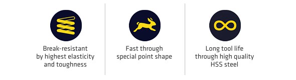 Satisfaction is guaranteed further still by a longer service life that has been increased by a factor of 3 through the use of high-quality HSS steel and a special heat treatment process. The speed and long-term efficiency of a champion are words that best sum up our ALPEN Sprint Master.