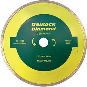 The continuous rim diamond blade is also known as a wet cut blade and needs to be used with water when cutting. It cuts the slowest of the different diamond blade styles, but produces the best cut.