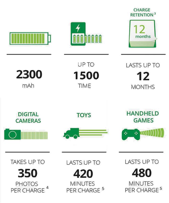 Environmental responsibility meets inspired technology – introducing the world's first AA/AAA rechargeable battery made with 4% recycled batteries. Now you can save money and have less impact on the planet by reducing the number of disposed batteries, creating less waste. By using Energizer Recharge® batteries for digital cameras, handheld GPS devices, wireless gaming systems, toys, you name it – you can experience the convenience and value of innovative, industry-leading rechargeable battery technology. Energizer Recharge® rechargeable AA and AAA batteries come pre-charged and ready to go, providing reusable power for the devices you love.