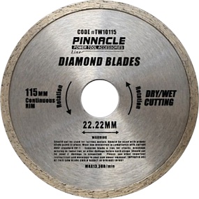 The continuous rim diamond blade is also known as a wet cut blade and needs to be used with water when cutting. It cuts the slowest of the different diamond blade styles, but produces the best cut.