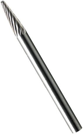 The tungsten carbide cutter has greater edge retention when compared to a steel cutter and can be used for material removal, shaping and smoothing on hard materials.