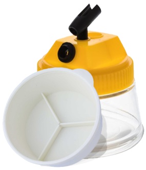Use the correct solvent for the media used in the airbrush. Using the cleaning pot correctly will result in a clean airbrush without a messy overspray.