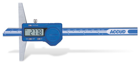 Professional electronic depth gauge by ACCUD, measuring range 0-150mm / 6 'and measuring resolution 0.01mm / 0.0005'. Made of stainless steel. Equipped with a data output port.