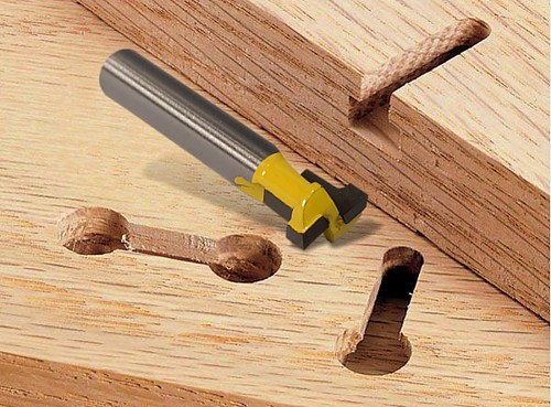 These bits are single fluted for easier plunging. When you want to hang a shelf, picture frame, clock, or candle sconce on a wall but don't want the mounting screws to show, use an inexpensive keyhole router bit to cut screw slots instead. Then, when you hang the piece, it will appear to 'float' on the wall. And, with keyhole slots you don't need special hardware. Once you've got the tools set up, you can cut multiple slots quickly and easily.