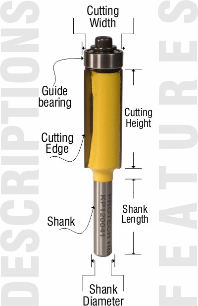 Use these flush trimming bits for laminate work or for template and pattern work.