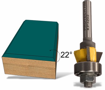 This 22 degree angled bevel carbide-tipped bit reduces vibration, and its three-flute configuration produces a very smooth cut. Some craftsmen apply this router bit in trimming melamine edging to reduce the sharp edge that normally exists on melamine edging.