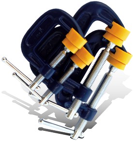 The C-clamp is used to secure workpieces to a bench or a template during an assembly. It can also be used in woodwork projects to glue/join pieces of wood.