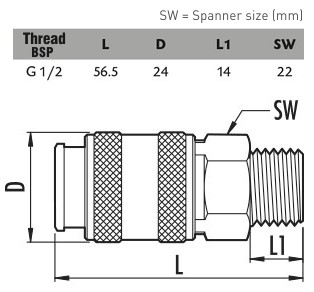 Universal quick coupler with six stainless steel locking balls suitable for different connector profiles with high air flow. Truly a universal solution in the workshop.