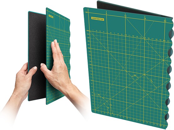 Self-healing, an OLFA original technology refers to the ability of the surface to return to its original shape after being cut and are ideal for general quilt cutting. A three-layer structure and soft cutting surface realize smooth cutting even after many years use.