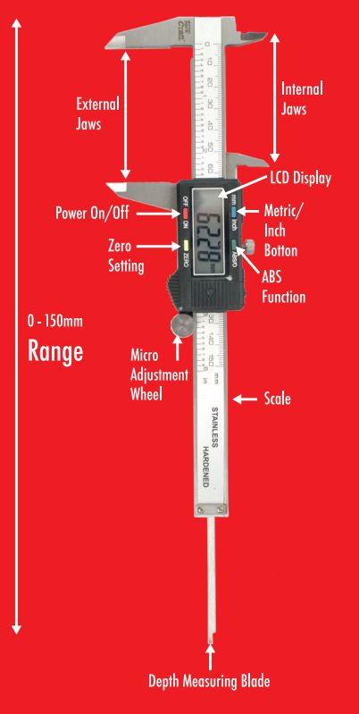 The Tork Craft Vernier Calipers are used to measure internal and external measurements