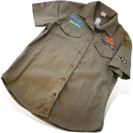 The blouse represents the Vermont Sales company. The leading brands are embroidered on the sleeves and the chest.