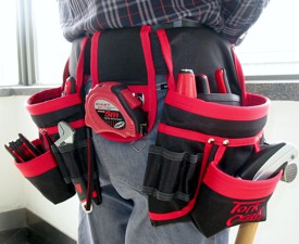 The tool pouches are used when a toolbox is not easily accessible. Tools that are often used are easily stored in the tool pouch's pockets when working on a ladder or working at heights.