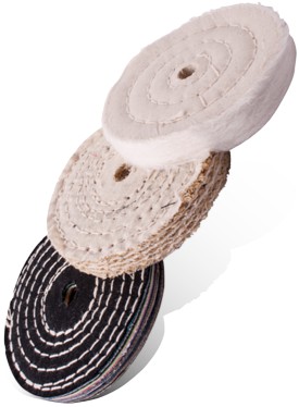 An unstitched buff is used with polishing (finishing) compound on metals. Each fold/leaf of material is approximately 1mm thick.