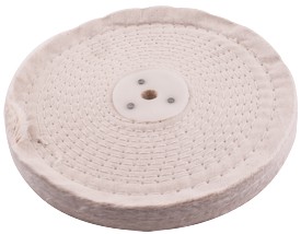 An unstitched buff is used with polishing (finishing) compound on metals. Each fold/leaf of material is approximately 1mm thick.