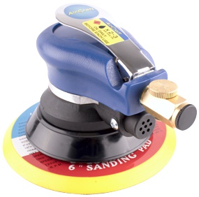 Professional pneumatic random orbital sander with Ø 150mm hook and loop sanding pad.