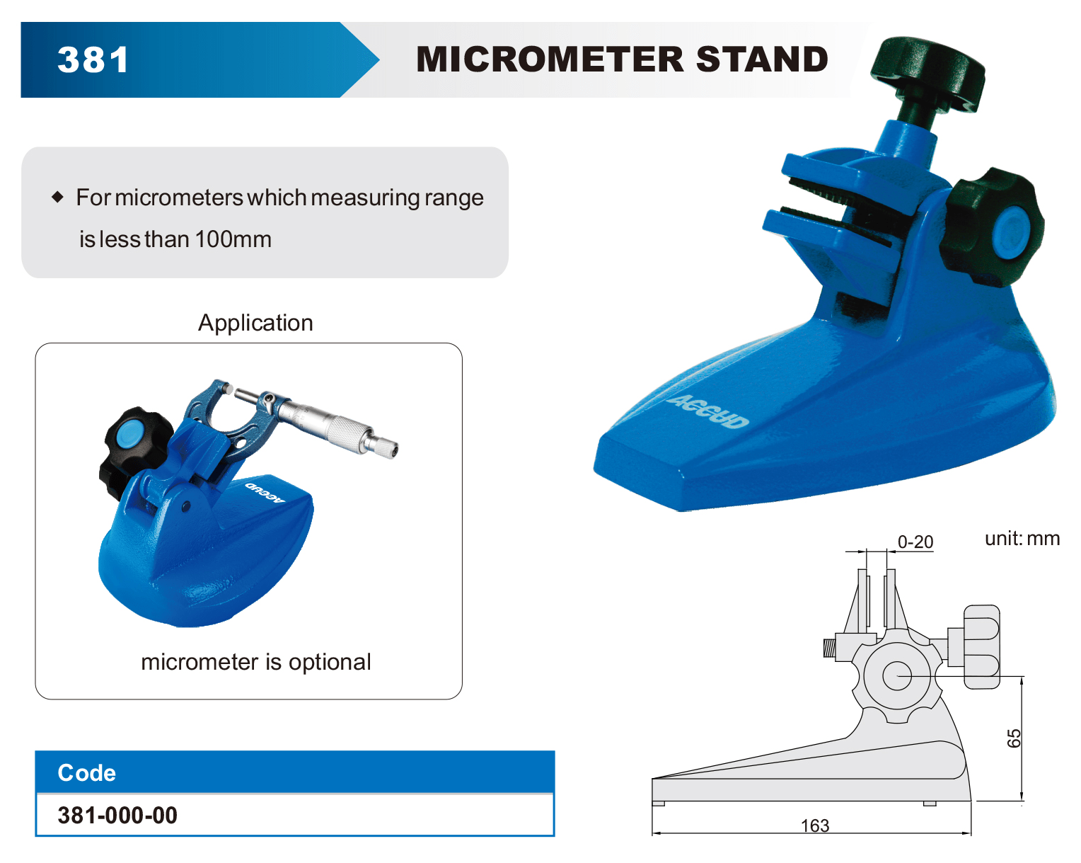 A micrometer stand is a tool designed to support and stabilize a micrometer during use. It provides a stable base, allowing for more precise and consistent measurements.
