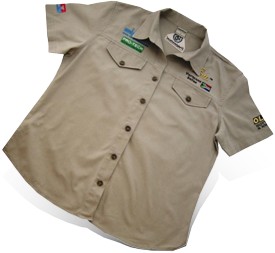 The blouse represents the Vermont Sales company. The leading brands are embroidered on the sleeves and the chest.