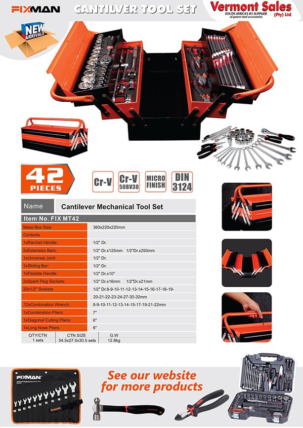 Various tool options combined apply to different working conditions, the mechanical cantilever tool set allows each tool to be well located and easily recognized. High quality tool components allow for intensive daily use & comfort of work